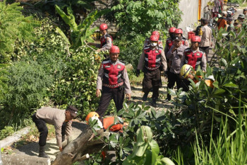 Tanggap Bencana, Polres Tuban Tangani Dampak Angin Puting Beliung