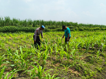 POLRESTA SIDOARJO | Warga Manfaatkan Lahan Kosong, Bhabinkamtibmas Desa Kesambi Dukung Ketahanan Pangan Lewat Penanaman Jagung
